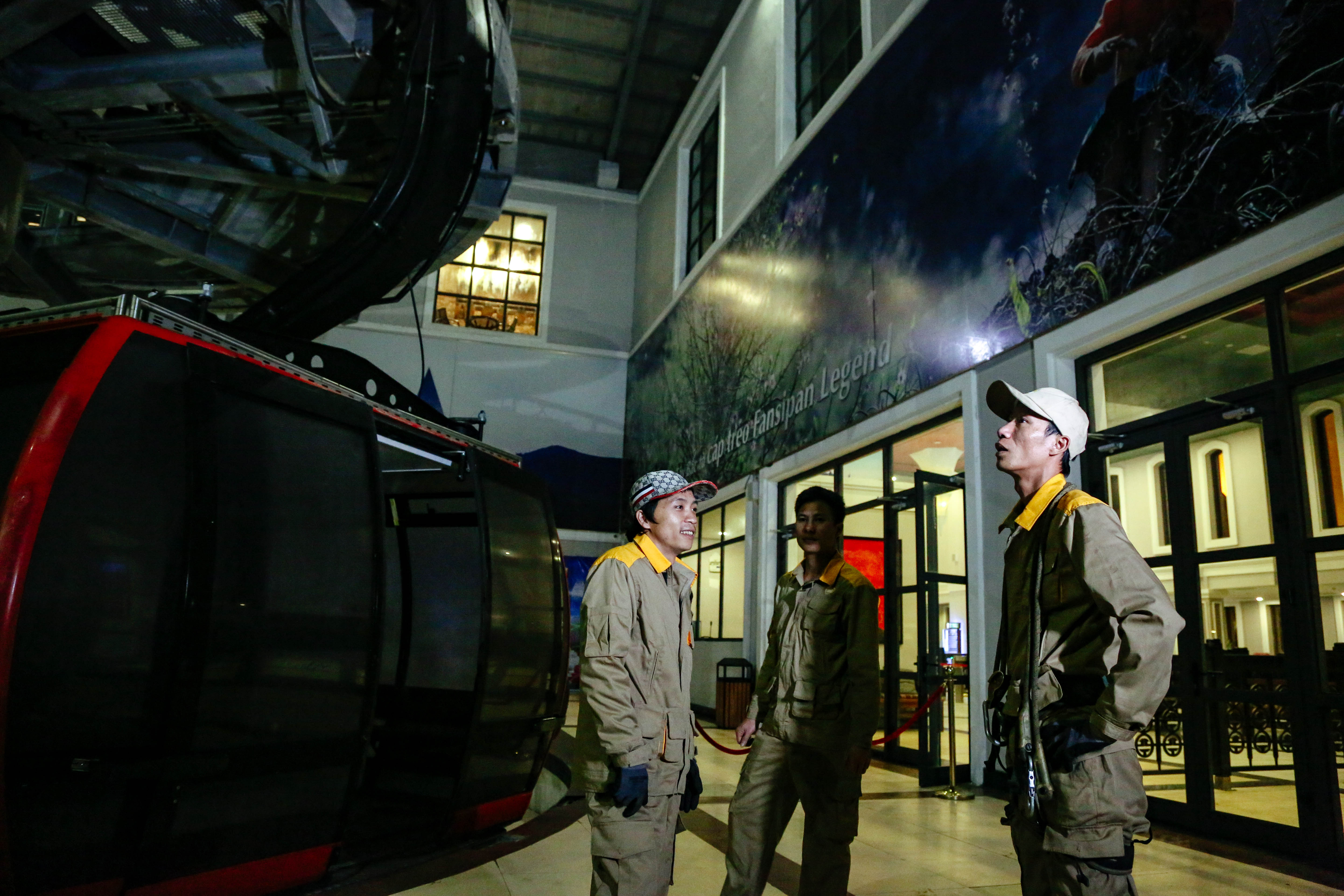 7 giờ tối, toàn bộ hệ thống ga cáp treo sẽ được nghỉ để đội bảo dưỡng có thể tiến hành công việc.