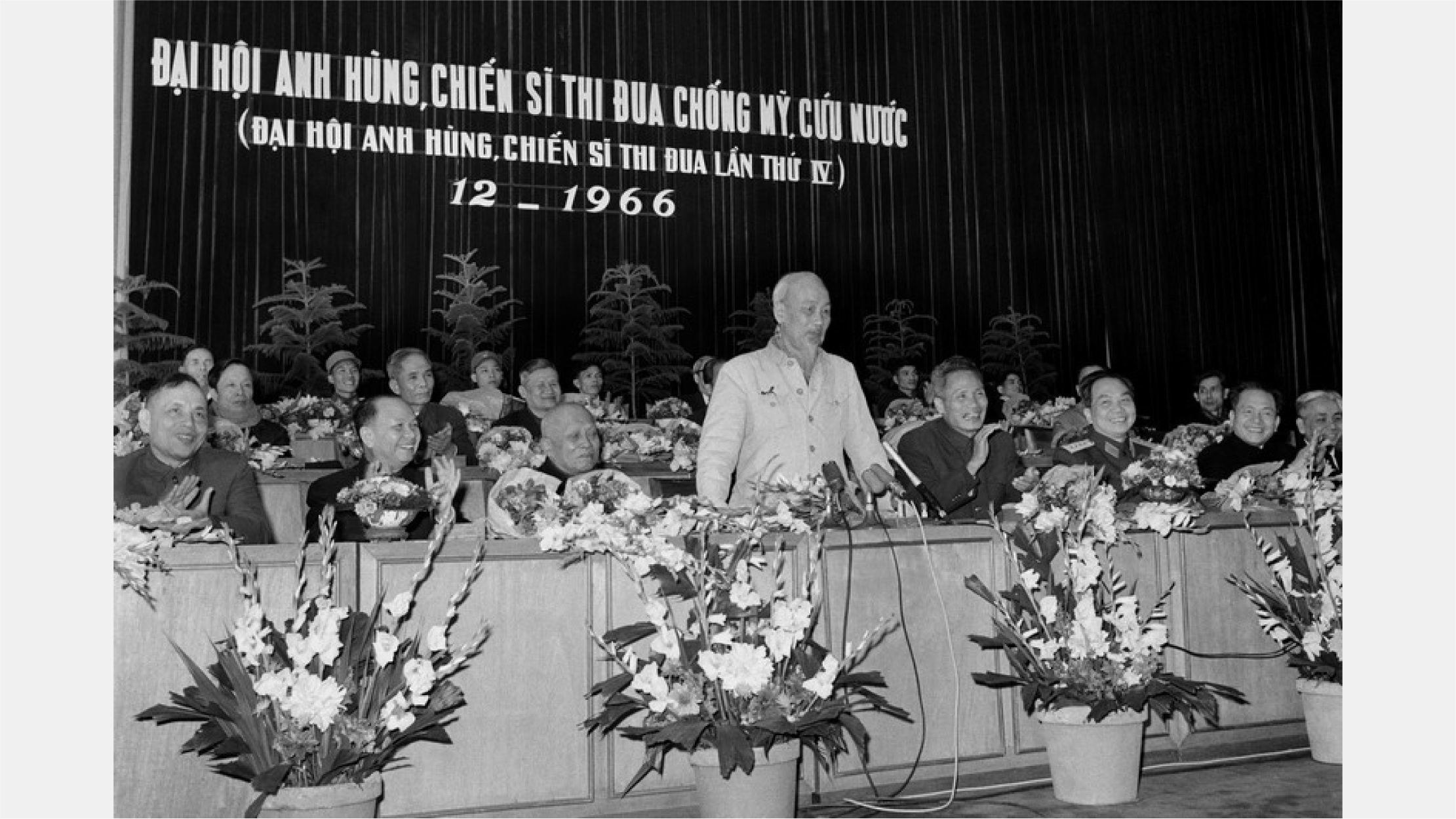 Chủ tịch Hồ Chí Minh tại Đại hội Anh hùng, Chiến sĩ thi đua lần thứ IV tháng 12/1966 (Ảnh: Tư liệu TTXVN).
