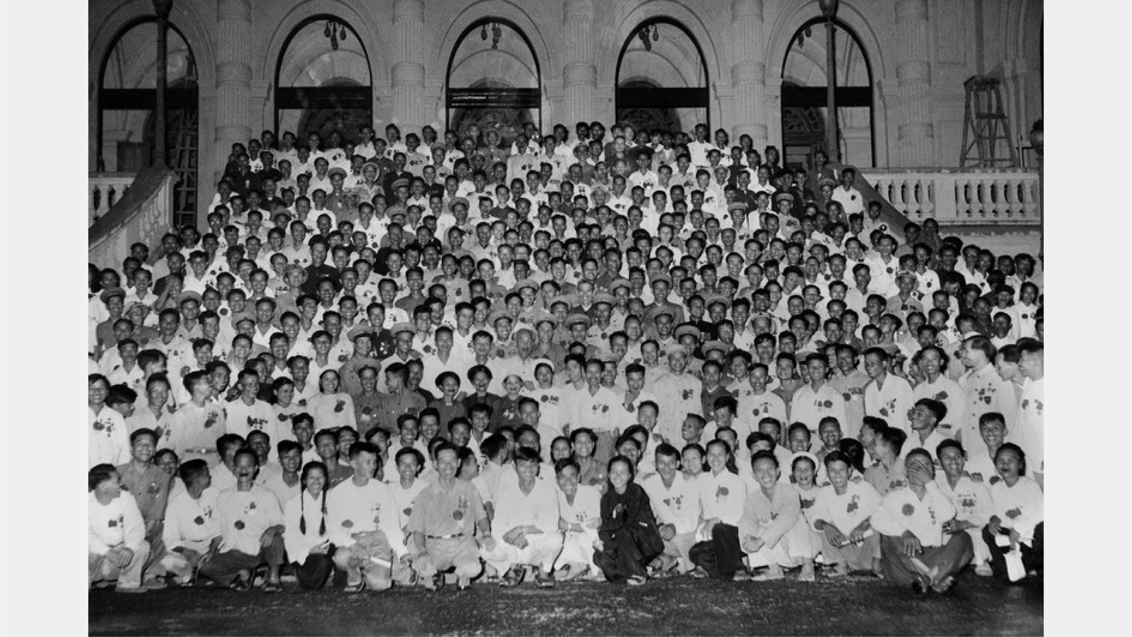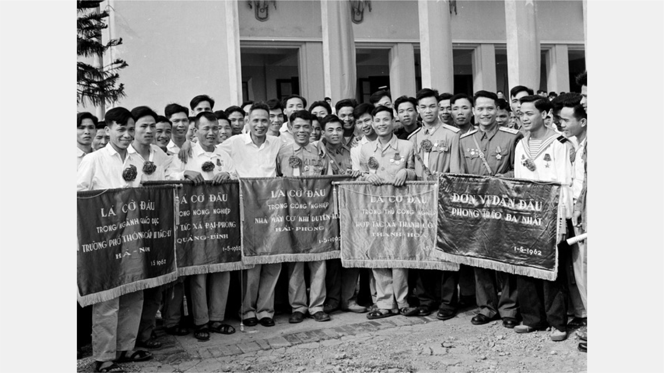 Chủ tịch Hồ Chí Minh với các đại biểu dự Đại hội liên hoan Anh hùng, Chiến sĩ thi đua công nông binh toàn quốc lần thứ II tại Hà Nội (07/07/1958). (Ảnh: Tư liệu TTXVN)