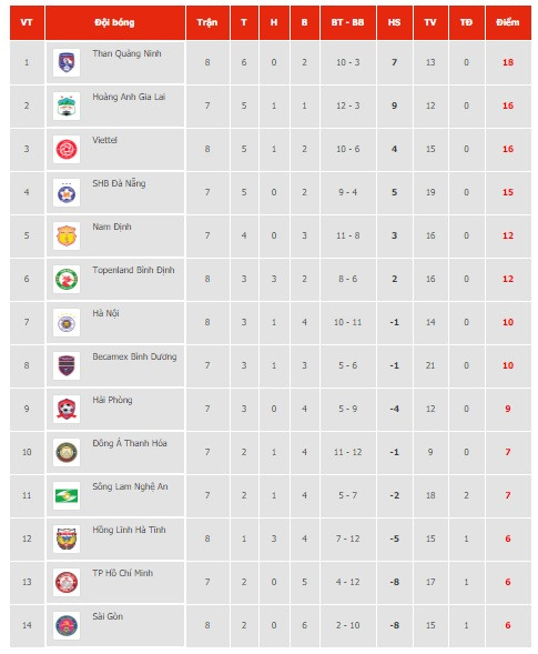 Sau trận thắng Hà Nội FC, Viettel hiện đứng thứ ba trên bảng xếp hạng với 16 điểm và cạnh tranh quyết liệt trong cuộc đua vô địch. Lịch thi đấu sắp tới của đội bóng này cũng tương đối thuận lợi để duy trì thứ hạng cao cho tới khi hết giai đoạn một./.