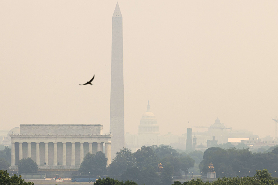 Khói mù do cháy rừng ở Canada bao trùm thành phố New York (Mỹ) ngày 7/6. (Ảnh: THX/TTXVN)