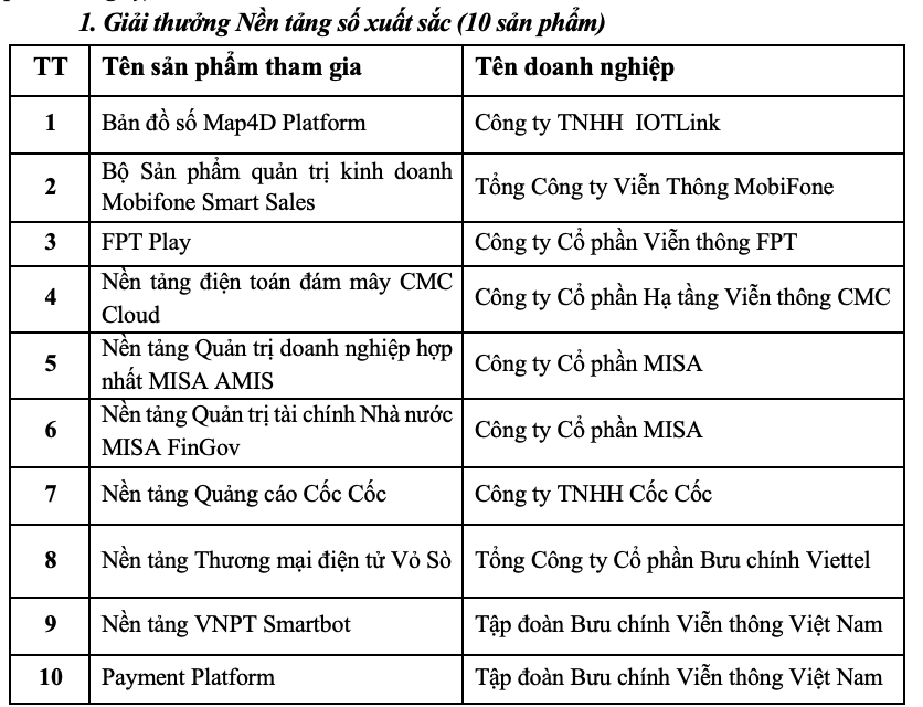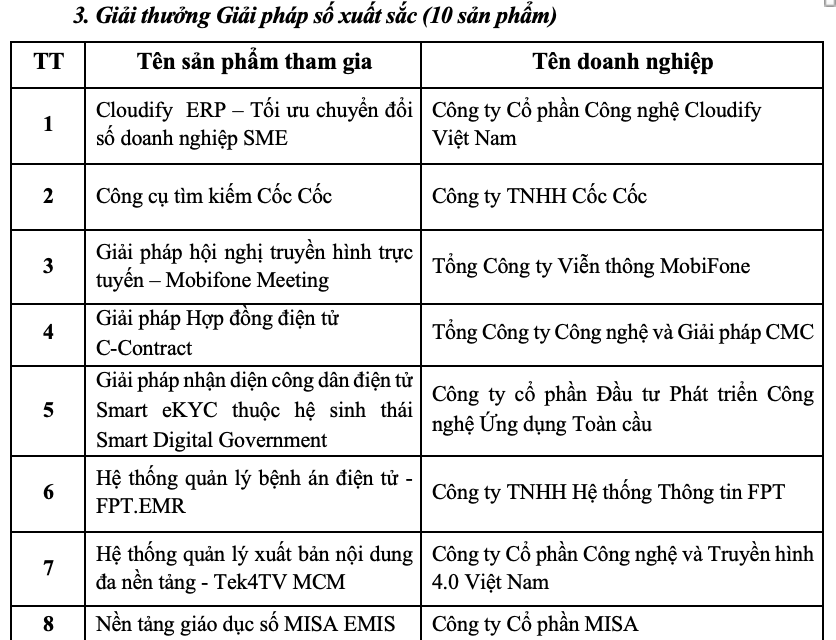 Đây là giải thưởng uy tín do Bộ Thông tin và Truyền thông tổ chức nhằm cụ thể hóa Chỉ thị số 01/CT-TTg của Thủ tướng Chính phủ ngày 14/1/2020 về thúc đẩy phát triển doanh nghiệp công nghệ số Việt Nam.