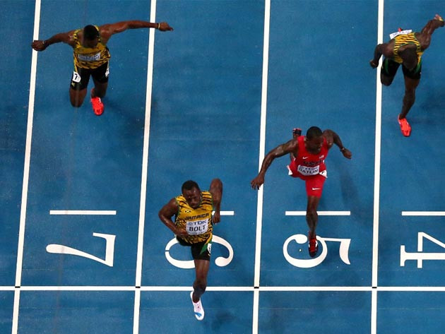 Bất chấp cơn mưa nặng hạt tại Mátxcơva, Usain Bolt vẫn xuất sắc cán đích thứnhất sau 9 giây 77, bỏ xa hai người về sau là Justin Gatlin của Mỹ (9 giây 85)và đồng hương Jamaica Nestar Carter (9 giây 95).