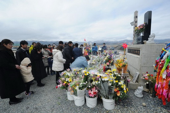 Hàng trăm gia đình Nhật Bản đã tập trung tại các thị trấn và nhữngngôi làng nằm dọc bờ biển vùng Đông Bắc đề tưởng nhớ những người thân đã bị sóngthần cuốn trôi.