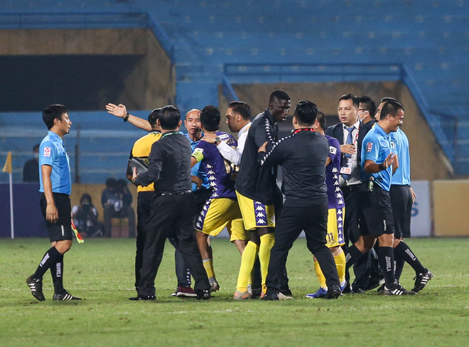 [Cho rằng bị xử ép, Hà Nội FC lao vào sân phản đối gay gắt trọng tài]