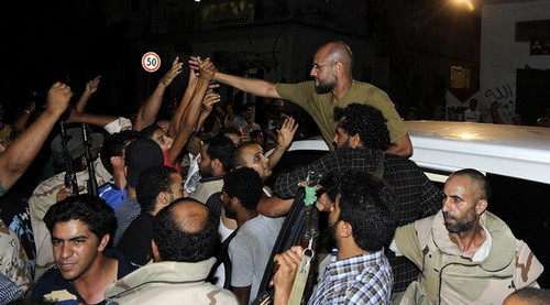 Saif al-Islam bước ra từ một chiếc xe bọc thép tại một khách sạn mà ông và cácphóng viên nước ngoài trú ngụ lâu nay. Trong tuyên bố của mình với phóng viêncủa AFP tại Tripoli, Saif cho hay: "Libya dưới quyền kiểm soát của chúng tôi."