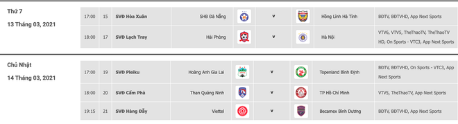 Ngoài trận đấu trên, SHB Đà Nẵng-Hồng Lĩnh Hà Tĩnh cũng là cuộc đấu hấp dẫn trong ngày V-League 2021 trở lại. Đội chủ sân Hòa Xuân cần 3 điểm, tiếp tục cuộc đua vị trí đầu bảng xếp hạng trong khi đội khách từ miền Trung muốn chiến thắng để sớm thoát khỏi nhóm bét bảng.