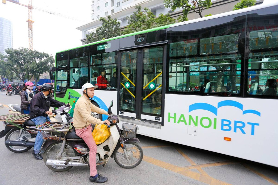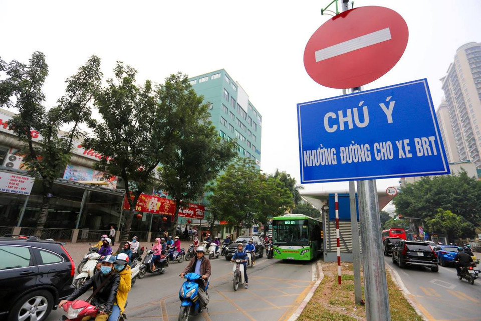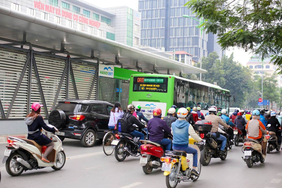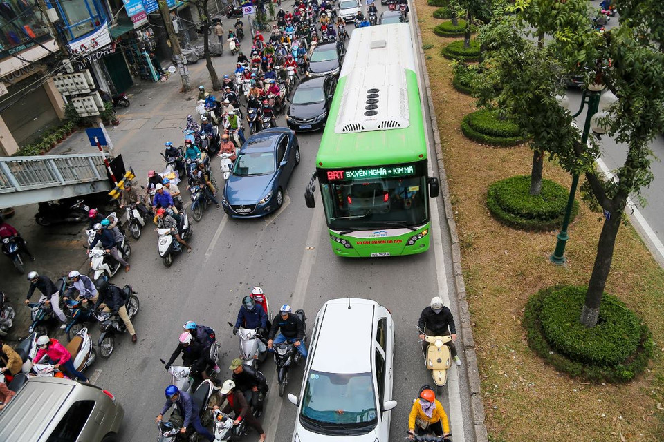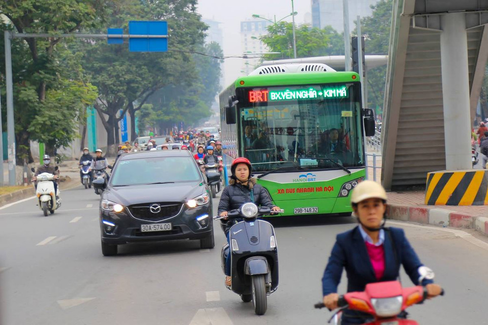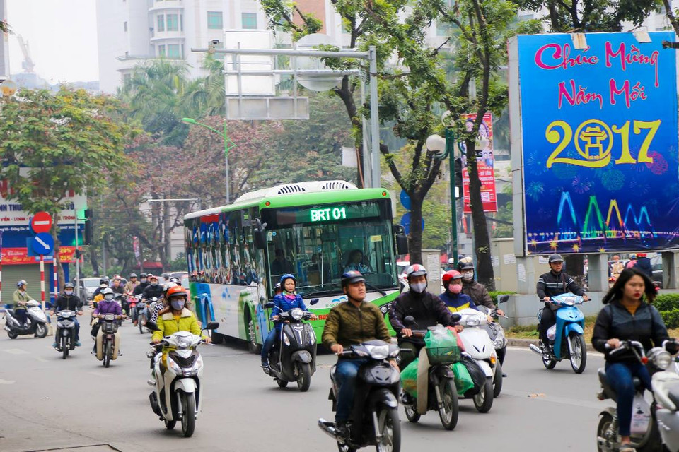 Trong ngày đầu tiên sau kỳ nghỉ Tết Dương lịch 2017, trên nhiều tuyến phố Hà Nội, xe buýt nhanh BRT bị “bủa vây” bởi rất nhiều phương tiện cá nhân.