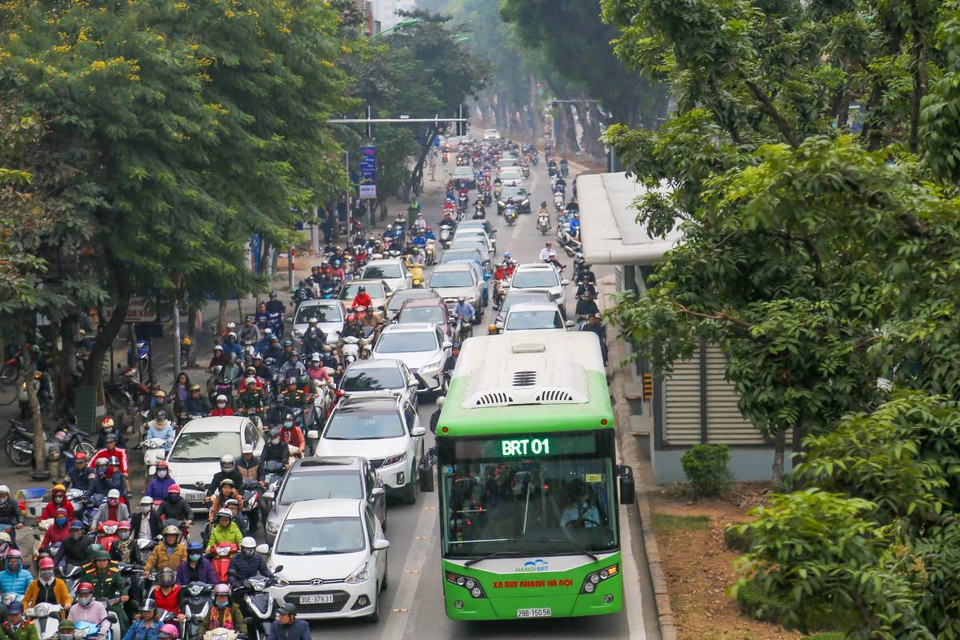 Xe bus nhanh “bất lực” giữa xe máy ngày đi làm đầu tiên sau nghỉ lễ