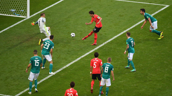 Tuy nhiên, do nôn nóng dâng lên tấn công nên thủ môn Manuel Neuer đã bỏ ngỏ khung thành, tạo điều kiện để Hàn Quốc phản công dẫn tới bàn nâng tỷ số lên 2-0. Thời gian còn lại là quá ít ỏi để Đức có thể làm nên điều kỳ diệu.
